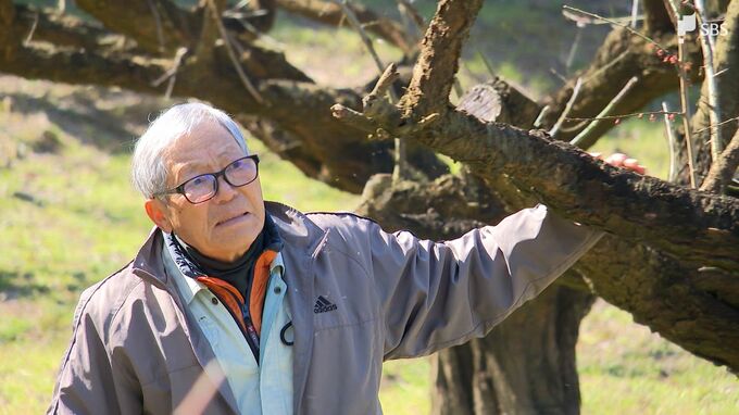 小澤勝さん。学校のすぐ近くで、梅を育てています。