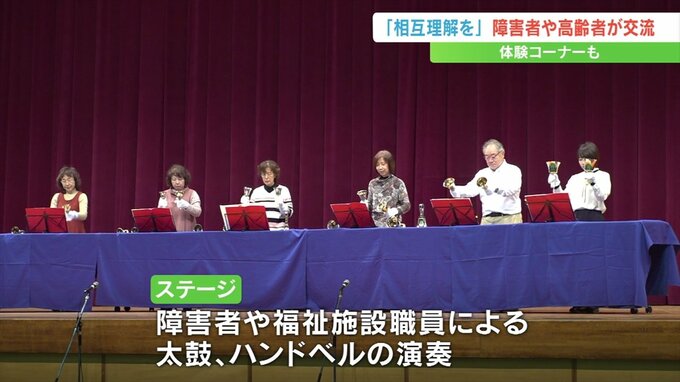 また、障害のある人や福祉施設の職員による太鼓やハンドベルの演奏も行われ、日頃の練習の成果を披露していました。