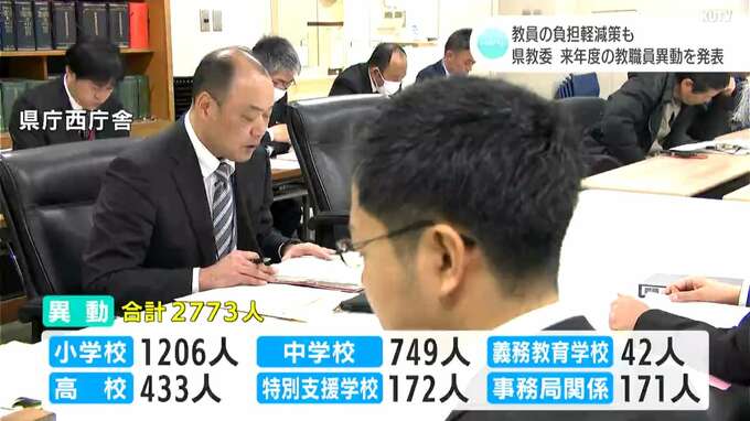 高知県教育委員会は、20日、2024年度の教職員の異動を発表しました。新卒の教員への負担を減らすため「サポート教員」が小学校に配置されるほか、「ICT教育」推進のための体制が強化されています。異動対象者の合…