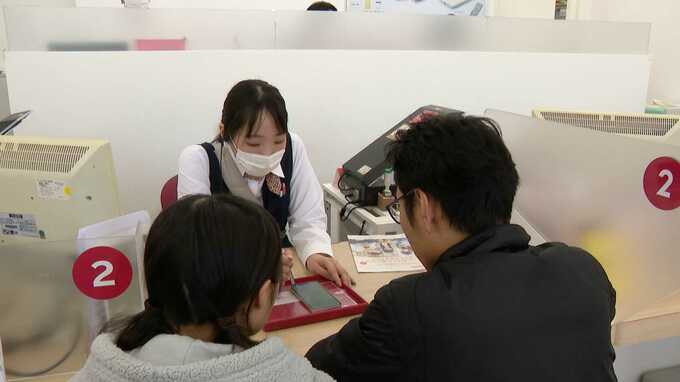 RKB毎日放送 町田有平「大野城市の携帯電話ショップです。いま、まさに親子連れがスマホを契約しているようです」