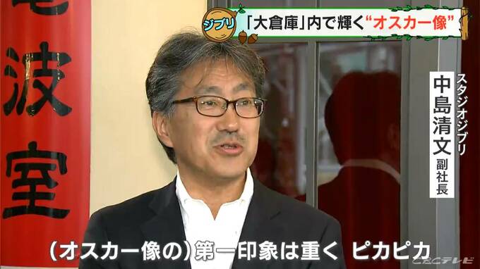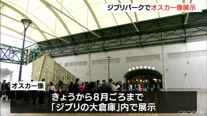 長久手市にあるジブリパークの、「ジブリの大倉庫」内に展示されている光り輝くオスカー像。3月、宮崎駿監督の映画「君たちはどう生きるか」がアカデミー賞長編アニメーション映画部門賞を受賞したことを記念し、20日から、ことしの8月頃までお披露目されることになりました。エンタメ界最高峰の受賞を称えるこのオスカー像、関係者には受賞の重みをより感じさせてくれるものです。
