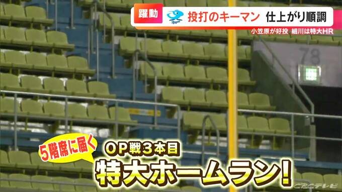 野手では、去年チームトップ、24本のホームランを記録した細川成也選手(25)が、5階席に飛び込む、オープン戦第3号となる特大のホームラン!今シーズンもドラゴンズ打線の主軸として期待がかかります。