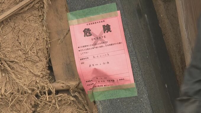七尾市の一本杉通りで明治時代に創業し、以来、和ろうそく一筋で商売を続ける高澤ろうそく店。築100年、国の有形文化財にも登録されている店舗は、今回の地震で軒先が大きく崩れ落ち、応急危険度判定では「危険」を示す赤紙が貼られました。