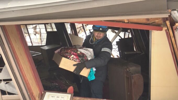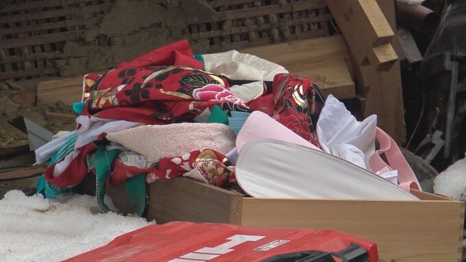 珠洲市宝立町にある北沢美容室は能登半島地震で建物が全壊し、客から預けられた成人式用の振袖9着が取り出せなくなっていました。