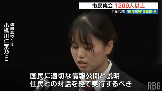 「自衛隊訓練場設置計画の断念を求める会」が主催した市民集会には、主催者発表で1200人あまりの市民らが参加しました。