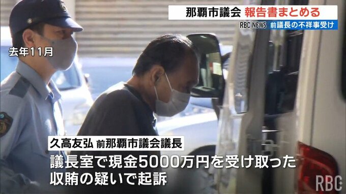 去年11月、那覇市の土地の所有権をめぐる贈収賄事件で、那覇市議会の久高友弘前議長が議長室で現金5000万円を受け取った収賄の疑いで起訴されたことを受け、市議会では、これまでに前議長による不祥事の検証や再発防止策について議論し、この度、報告書をまとめました。