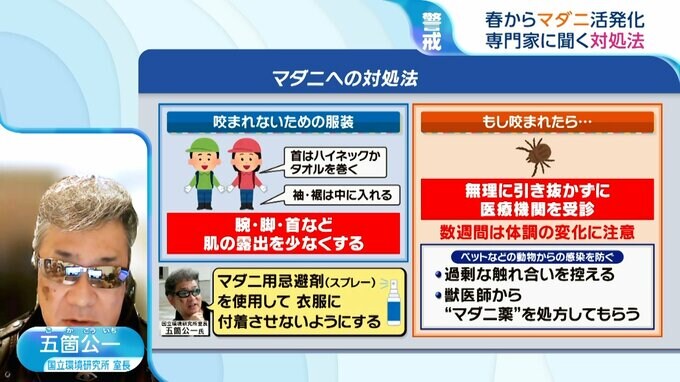 節足動物ですので基本的に冬の間は動きがないんですけれども、春になって暖かくなってきて、さらに動物も活発に動きがあることでマダニの動きも活発になってきます。