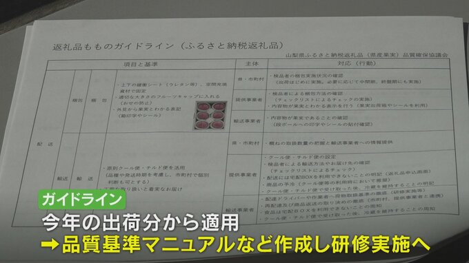 山梨県産フルーツのふるさと納税の返礼品に低評価が相次いだことの対策を考える協議会は、品質を確保するためのガイドラインを策定しました。