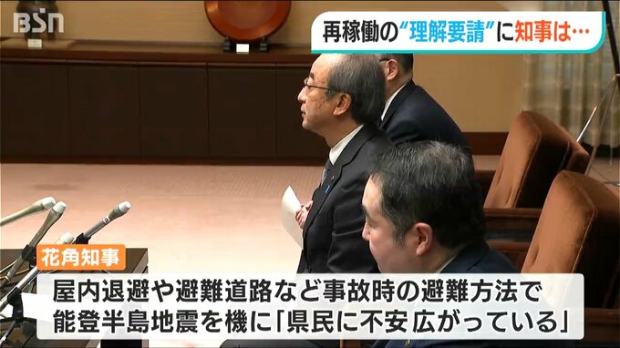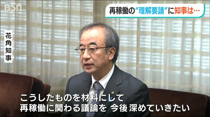 【花角知事】「こうしたものを材料にして、再稼働に関わる議論を今後深めていきたい。県民がどういう風にこの問題を受けているか、それを丁寧に見極めてまいりたいというふうに思っています」