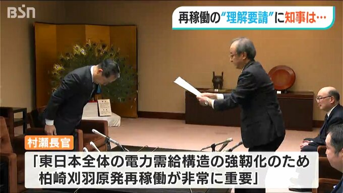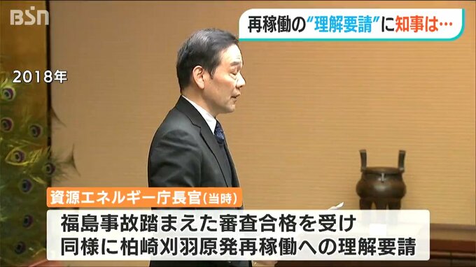 柏崎刈羽原発をめぐっては、福島第一原発事故を踏まえた審査に2017年に合格した際にも、当時の長官が県庁を訪れ、同様の要請を行っています。