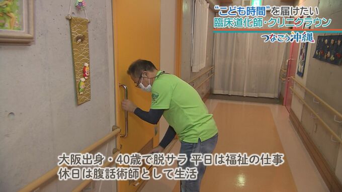 そのひとり、ポリタンの名前で活動する伊佐常和さん。普段は南風原町にある、病気の子どもとその家族のための宿泊施設で働いています。クリニクラウンになって18年になりますが、それまでの道のりは、ちょっとユニークです。