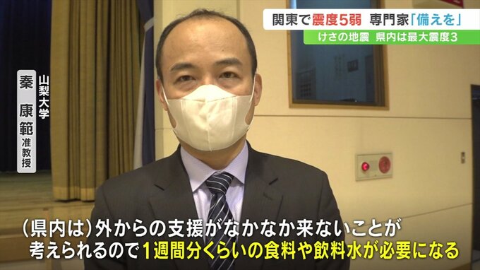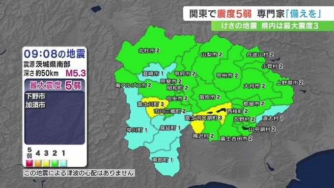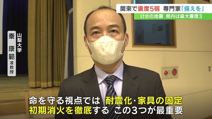 21日朝、関東で震度5弱、山梨県内で震度3を観測する地震がありました。