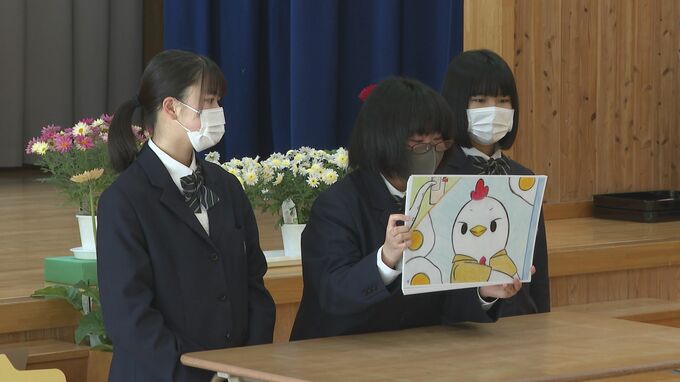山口県長門市の高校生が21日、地元の食べ物を知ってもらおうと紙芝居を作成し、保育園に贈呈しました。