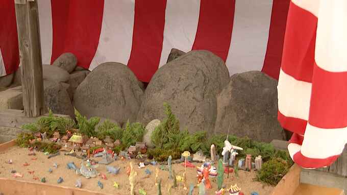 箱庭を出している人「3年ぶりで楽しいですよ。子供たちが喜びよるでしょうが。昔は箱崎の漁師町があって、1軒1軒が素朴な人形を飾ってね、ばあちゃんが子供にお菓子をやりよったね。僕も小さい時、それがうれしかったんでね、もう本当うれしかったですよ」
