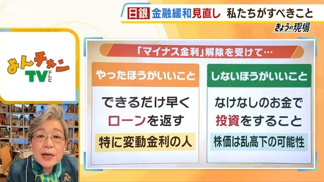 ――経済ジャーナリスト荻原博子さんは、今後の注意点として、2つ挙げてくれています。「できるだけ早くローンは返した方がいい。特に変動金利の人は」さらに「なけなしのお金で投資はしない方がいい。」ということです。