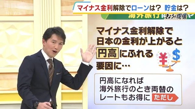 (経済ジャーナリスト荻原博子さん)多少はあるかもしれませんけど、今回0.1%の金利で、いまアメリカは4%~5%とか金利がついているので、それで金利差が縮まったっていう話でもないです。ドラスティックに期待するほどには円高にならないと思いますね。