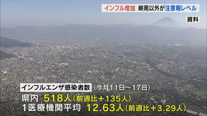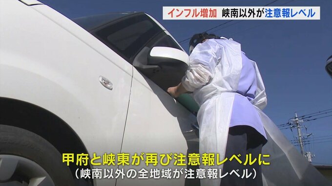 山梨県内でインフルエンザの感染者が増加し、甲府と峡東が再び注意報レベルに入りました。