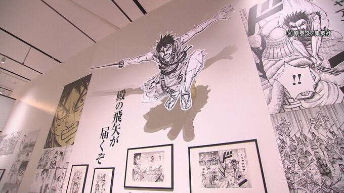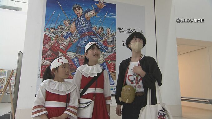 大人気漫画「キングダム」の原画展が22日から県立博物館・美術館で始まり、熱心なファンで賑わっています。