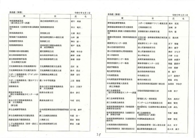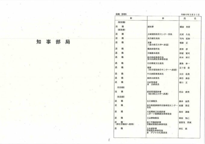 富山県 職員人事2024【異動名簿一覧】課長級以上の女性管理職 20.2パーセント 98人を登用(2024年4月1日発令) チューリップテレビ 2024年3月22日(金) 16:00 国内 暮らし・マネー 知事部局 富山県職員異動一覧2024