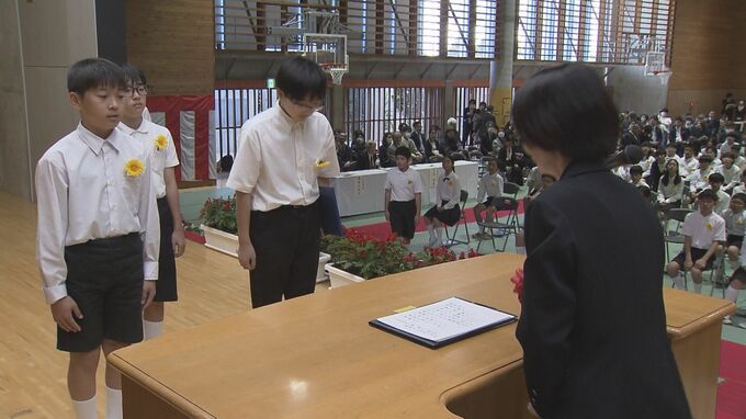 創立138年を迎える那覇市の城西小学校では、卒業生117人が門出の日に臨み、卒業証書とともに自分たちで手作りした芭蕉紙の記念紙を受け取りました。