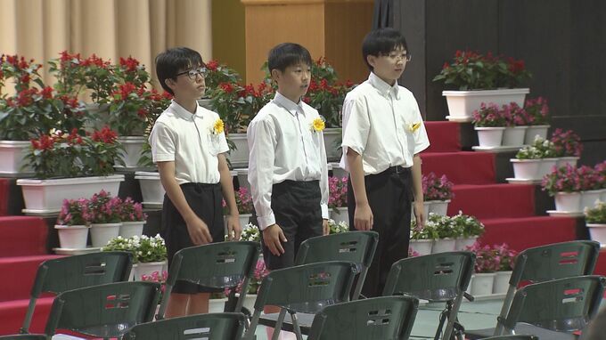 手渡された記念紙には、万国津梁の鐘の碑文の一節が記されていて、式では仲地千佳校長が「世界をつなぐ架け橋のような人物になってほしい」とはなむけの言葉を贈りました。