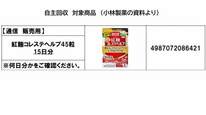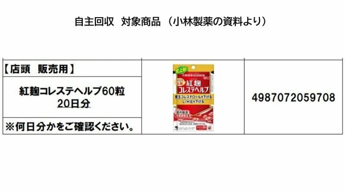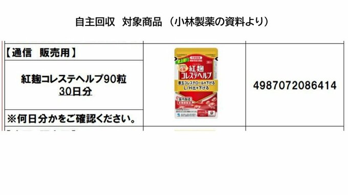 【速報】小林製薬がサプリメントの自主回収発表「紅麹コレステヘルプ」など3製品 摂取した人から「腎疾患等」が発生したとの報告 製品の使用中止を呼びかけ 毎日放送 2024年3月22日(金) 17:25 国内 自主回収の対象品