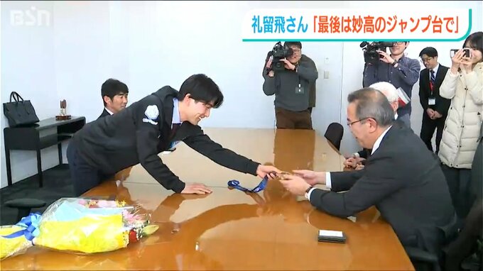 2014年ソチオリンピックの銅メダリストで、先日現役最後のジャンプを終えた清水礼留飛(しみず・れるひ)さんが地元の新潟県妙高市を訪問しました。最後は地元のジャンプ台で飛びたいと、ふるさとへの思いを語りました。