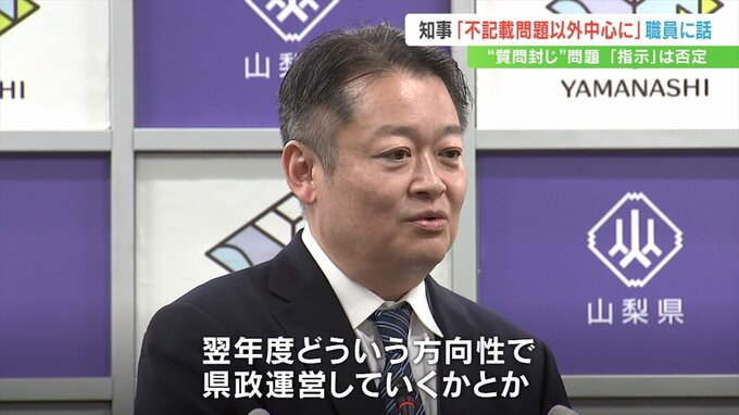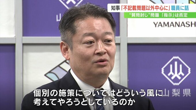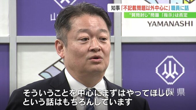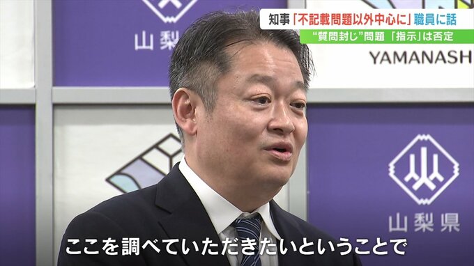 22日の記者会見で、知事は改めて自らの「指示」を否定した一方、職員に対して「不記載問題以外を中心にやってほしい」といった話はしたとしています。