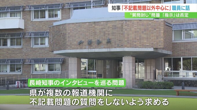 この問題は2月に行われた長崎知事へのインタビューを巡り、県側が複数の報道機関に対して不記載問題の質問をしないよう求めたものです。