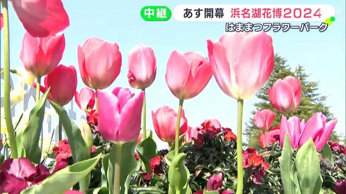 あす開幕の「浜名湖花博2024」は6月中頃まで続きます。会場のはままつフラワーパークから中継でお伝えしました。