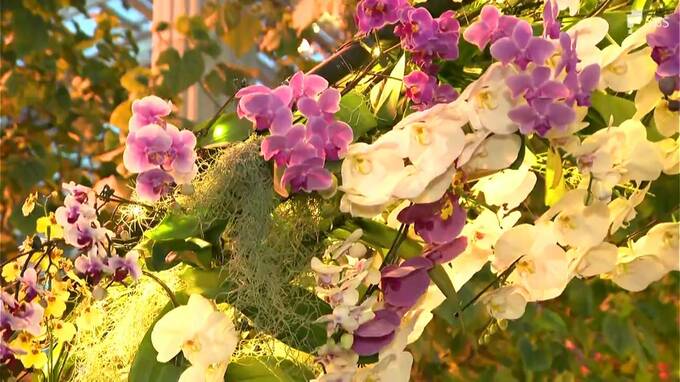 夜の「はままつフラワーパーク」園内中央付近に位置する第4室、クリスタルパレスというところに来ています。こちらは、あすから開催される「浜名湖花博2024」の開会式の会場にもなっているんですが、いま、ランが見頃を迎えているんです。手のひらサイズ、色とりどりのランが約500本も植えられているということで、温室の中は花の香りでいっぱいになっています。あすから開催される「浜名湖花博2024」。きょうの内覧会では新しい試みも垣間見えました。