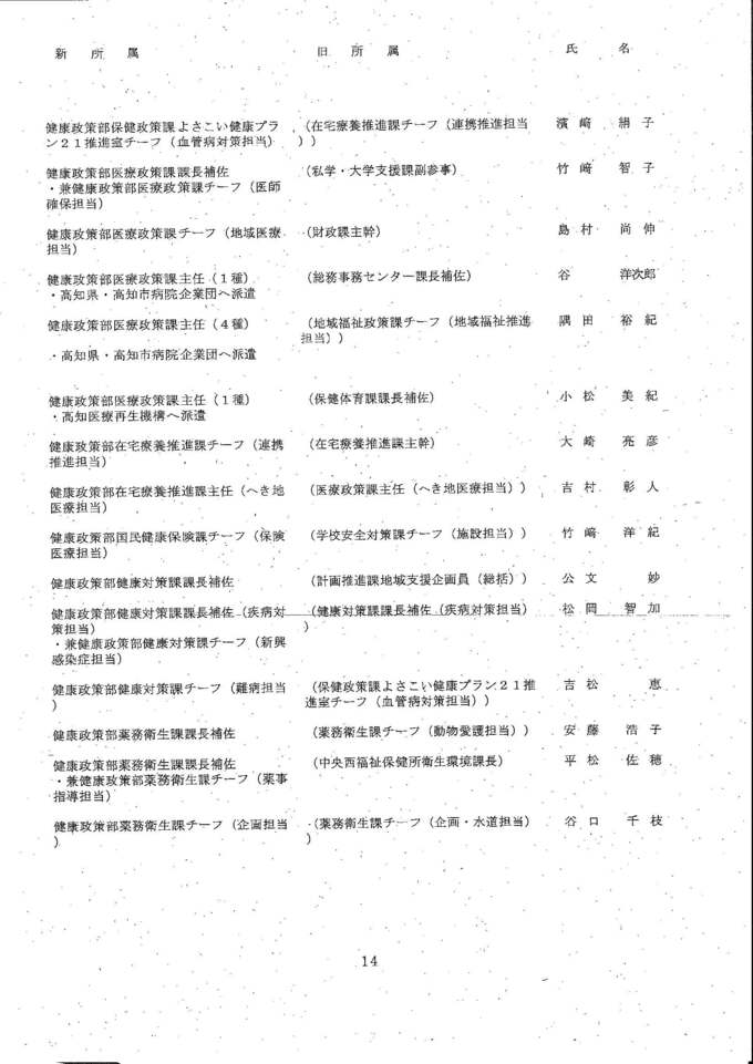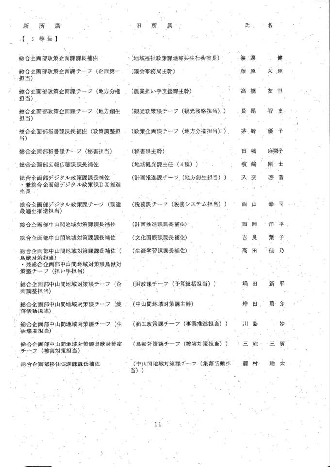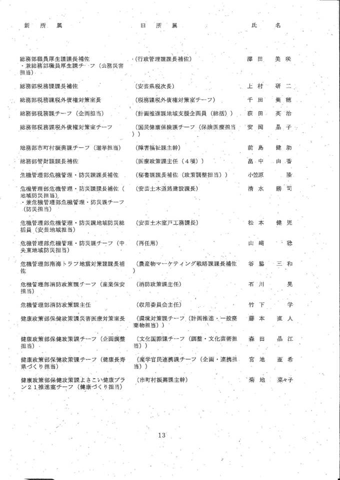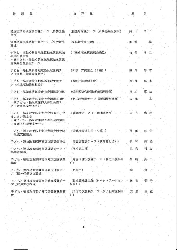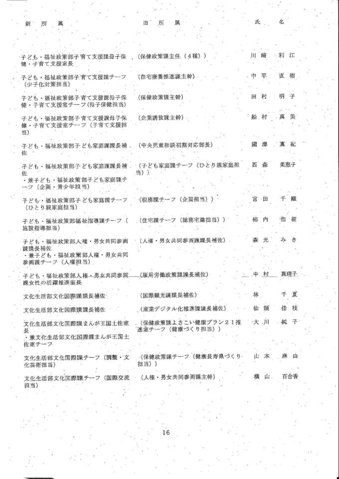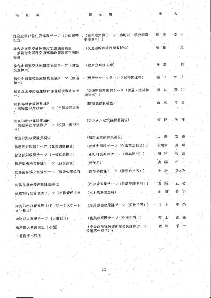 知事部局の課長・室長補佐、チーフ級の人事異動は次の通りです。