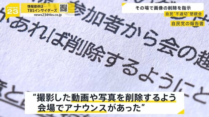 自民党がまとめた報告書で、撮影した動画や写真を削除するよう会場でアナウンスがあったことも明らかになりました。