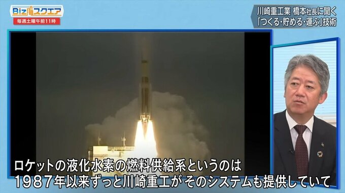 種子島のロケットは液化水素を燃料として飛んでいるのですが、液化水素の燃料供給系は1987年以来川崎重工がそのシステムを提供しておりまして、液化水素を提供するというシステム、設備に関しては実績があるのです。我々の技術のコアは断熱技術にあります。「すいそ ふろんてぃあ」がどのぐらいの断熱技術を実現したかと言いますと、タンクに100度のお湯を入れて1か月間ほったらかしにしても99度、たった1度しか下がらない。そのぐらい高い断熱性能を誇っている。