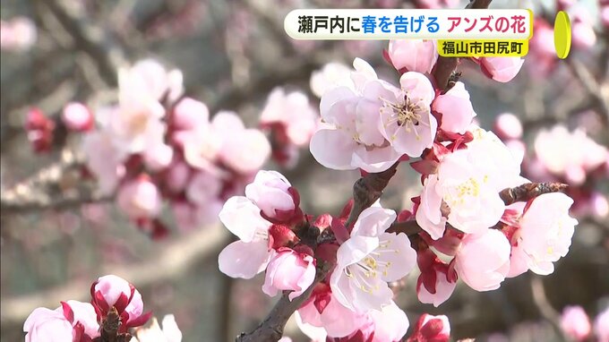 広島県福山市の田尻町では、アンズの花が五分咲きとなりました。田尻町のアンズはおよそ340年前に、大分から移住してきた寺の住職が、タネを境内に植えたのが始まりとされています。