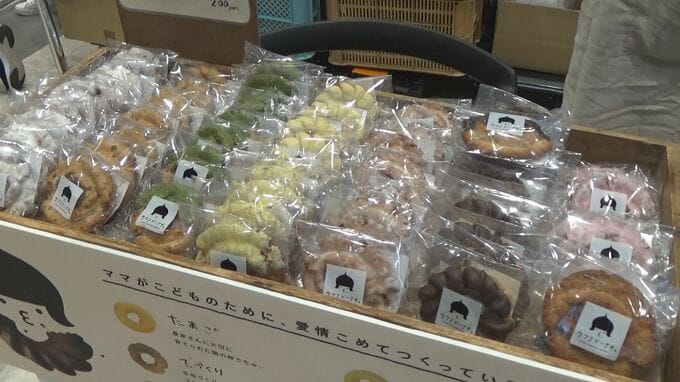 県立図書館の屋内広場で開かれたミニマルシェには、朝どれの新鮮な野菜や能登産の食材を使ったスイーツなどが並びました。