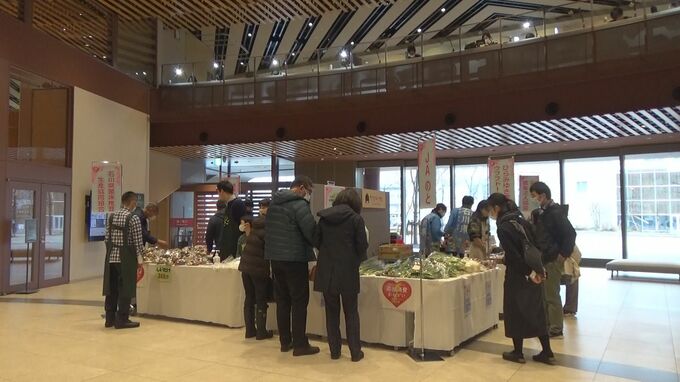 能登半島地震で被災した農家を支援しようと、石川県金沢市の県立図書館で3月23日、小さなマルシェが開かれました。
