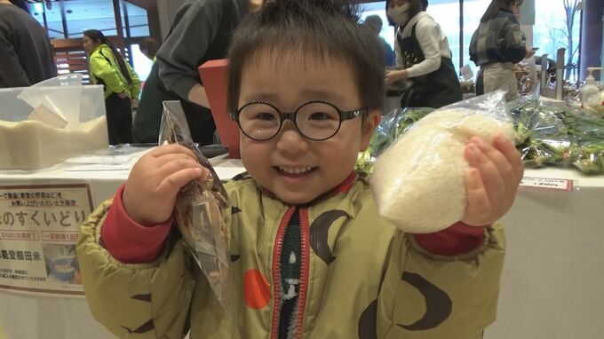 購入した人には能登棚田米がプレゼントされ親子連れらでにぎわいました。