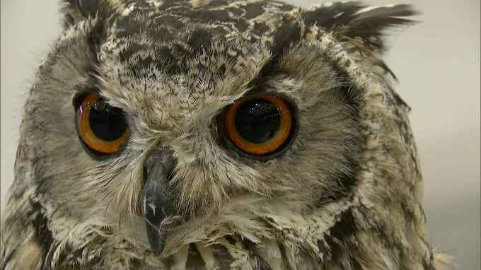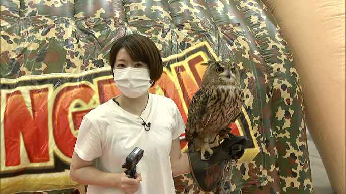 RKB鑪加奈「このイベントの大きな魅力は、動物と間近でふれあえることです。ふくろうのずっしりとした重みとりりしい顔を間近で見ることができます。毛並みもきれい」