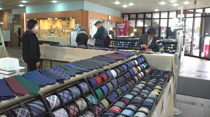 山梨を代表する地場産業・郡内織物のネクタイを集めた販売会が、甲府市で開かれています。この「ネクタイ1万本まつり」は、毎年春と秋に開催されていて、今回は富士吉田市や都留市の織物業者が出店しています。店…