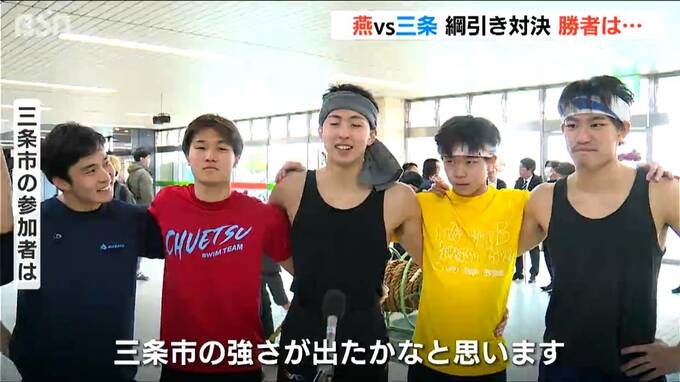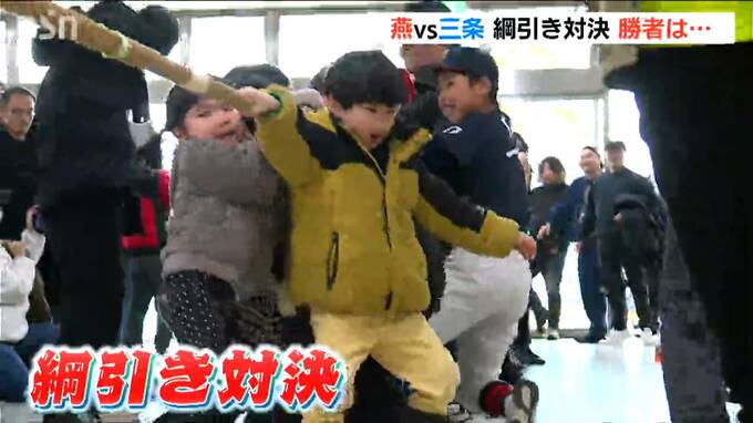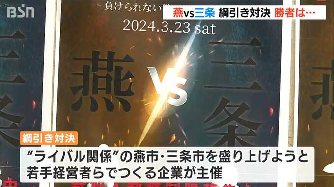23日、新潟県のものづくりの街・燕市と三条市が互いのプライドをかけて勝負する綱引き大会が開かれ、白熱した戦いが繰り広げられました。