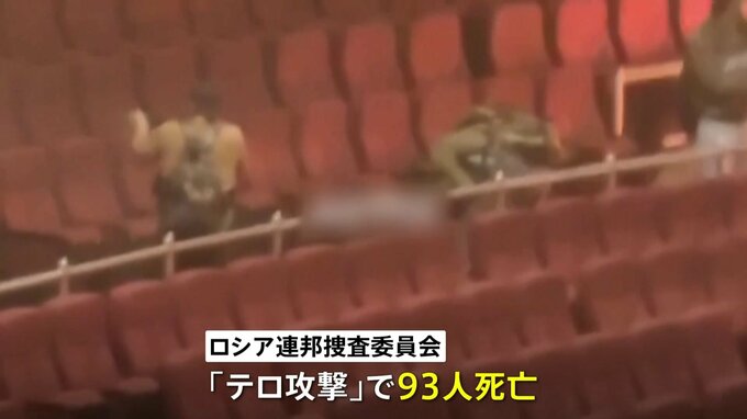ロシアの首都モスクワ郊外のコンサートホールで武装グループが銃を乱射し、捜査当局によると、これまでに93人が死亡したということです。劇場の通路で銃を撃つ男たち。銃口から火花が見えます。モスクワ郊外のコン…
