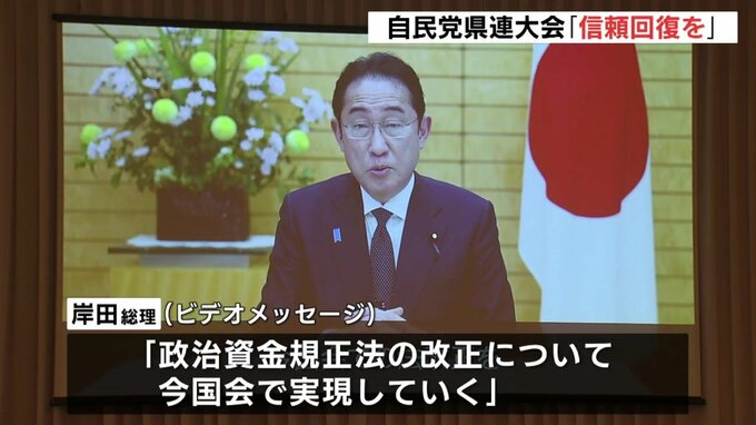 自民党広島県連の定期大会が広島市で開かれ、派閥の政治資金を巡る問題の中、党の信頼回復に当たっていくことを確認しました。大会には、県選出の国会議員や地方議員など500人が出席しました。岸田総理「深い反省…