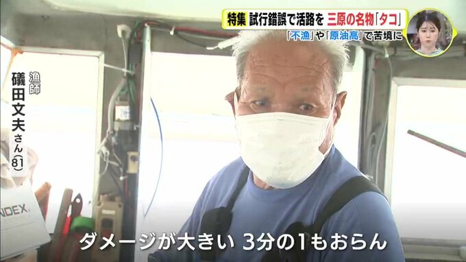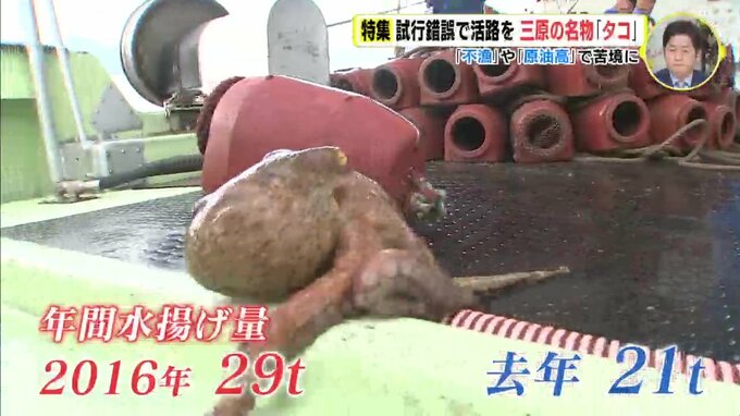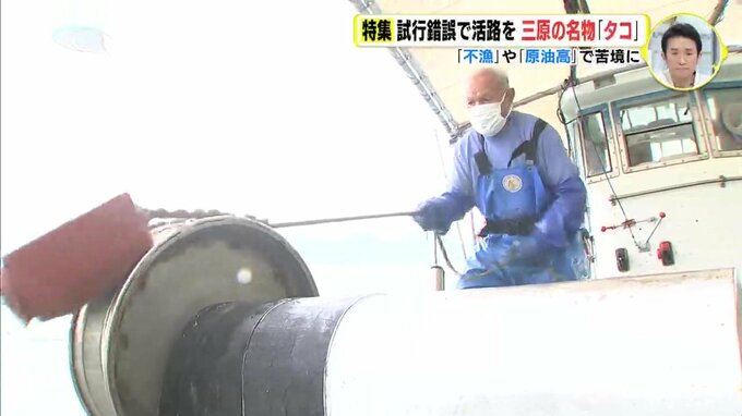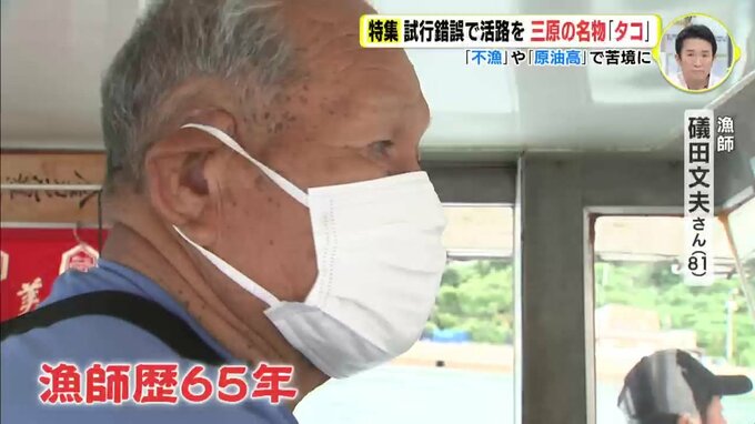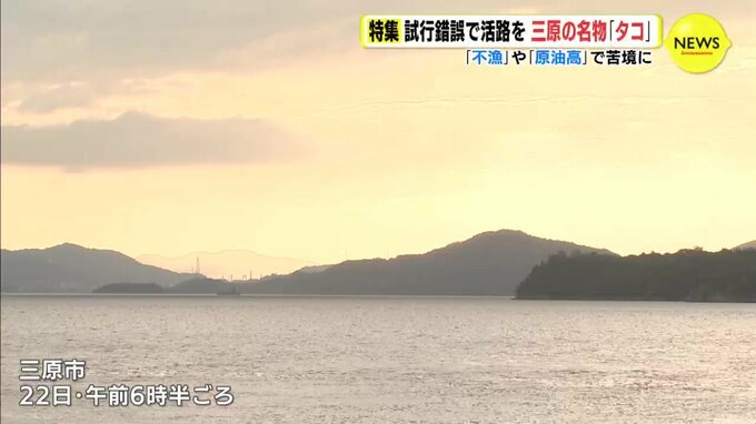 販路拡大に向け、ブランド化を目指している三原名物「タコ」についてです。タコ漁が最盛期を迎えている中、漁師は「不漁」に「原油高」と苦境に立たされています。