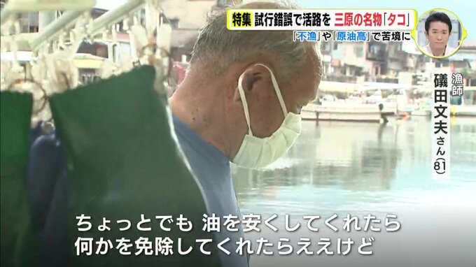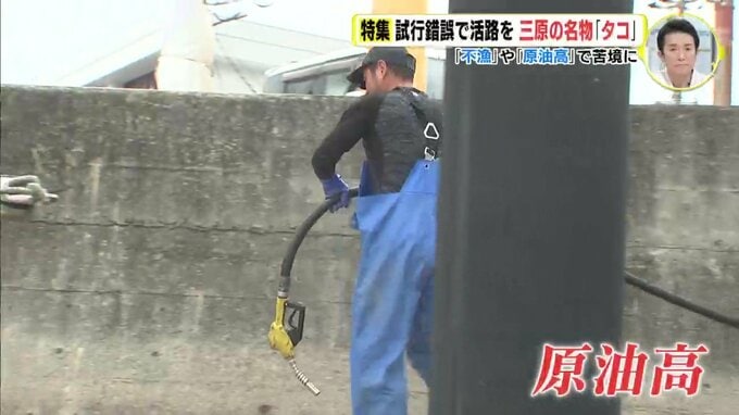 「どうもこうも、食べていかりゃせんわいね。ほいじゃけえ、出られんよ。漁がないんじゃけえ。油代が(1日)1万円分も要ったら、あんた、タコ20キロ・30キロ獲ってきよったら、油代がタコ10キロ分は要ろう」
