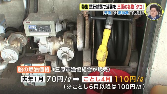漁協が販売する1リットルあたりの船の燃油価格は、去年1月の70円から上昇し、ことし4月には1.5倍以上の110円まで値上がりしました。