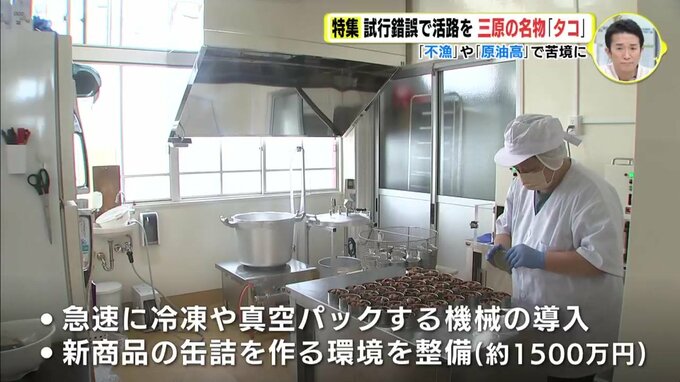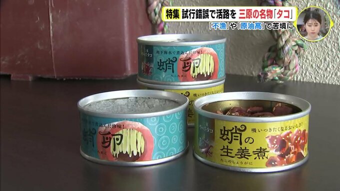 ― 三原市漁協組合のタコ漁師は10人で、平均年齢80歳。最高齢は86歳。担い手不足も不漁に拍車をかけています。缶詰は、来月8日にスーパーや道の駅などで販売される予定です。