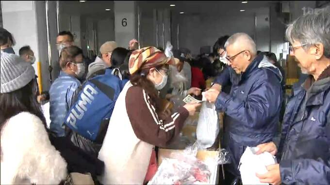 塩釜市の魚市場で24日、「春の魚市場まつり」が5年ぶりに開かれていて、海の幸を求める多くの人でにぎわっています。