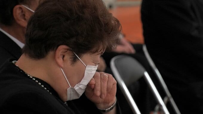 事故当時、上海郊外の現場は、霧雨が降る寒い日だったといいます。当日と同じ、雨に見舞われた慰霊式には、遺族の宮地俊子さん(75)が、溢れ出る涙を堪えながら参列していました。