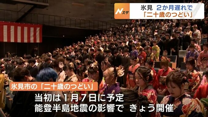能登半島地震の影響で2か月あまり延期となっていた「二十歳のつどい」が今月24日に被災地の富山・氷見市で開かれました。